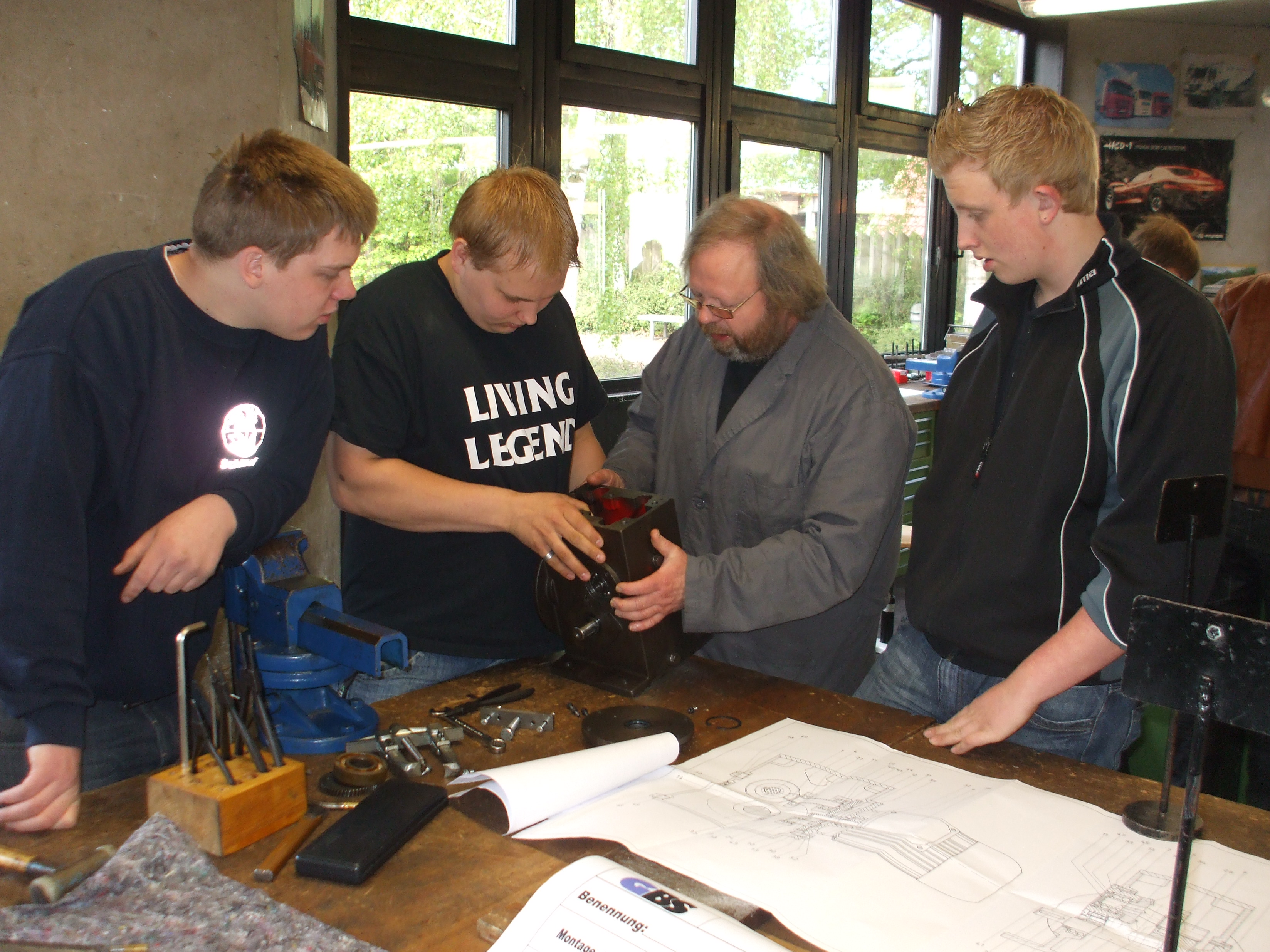 In dem Werkraum wurde ein Ersatzteillager eingerichtet. Darin waren zahlreiche Wälzlager, wichtige Werkzeuge und Hilfsmittel enthalten, auf das die Schüler freien Zugang hatten. |
