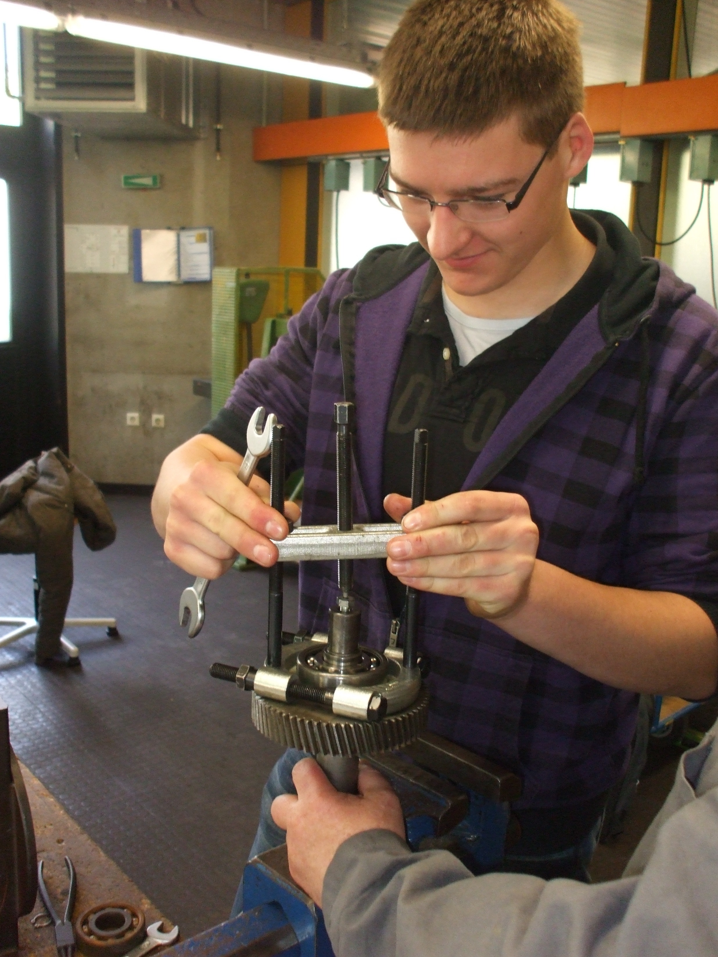 Während der Durchführung konnten die Schüler verschiedene Abziehvorrichtungen für Wälzlager kennen lernen und ausprobieren. |